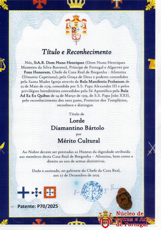 Presidente HONORÁRIO do Núcleo Académico de Letras e Artes de Portugal